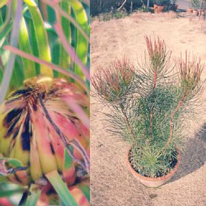 (╥﹏╥)(╥﹏╥)(╥﹏╥) 今日は梅雨明け後の真夏日続きで、調子を崩してしまった植物さんからの投稿です💧 先週「樹高は高くならないけど、花芽がついてます♪」な〜んて投稿してたオーラックス・ブロンズヘイズさん(右上)がぁ〜😭😭 いきなり黒っぽくなって首をもたげてしまわれました😱💦 隣に置いていたコーストバンクシアさん(左下)と同じように水やりをしていたのですが……😢 園芸初心者🔰にはオージープランツはなかなか難しいです💦💦 しかぁし!! めげでいても仕方ありませんᕦ(ò_óˇ)ᕤ“ とりあえず半日陰に移動して活力剤を与えてみます(;^_^A 復活してくれると良いのですが……🙏💦