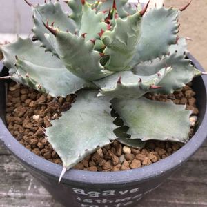 Agave isthmensis 王妃カブトガニ 白肌に赤棘が映えているイシスメンシス🦀 ぷっくりした葉が良いですね😋
