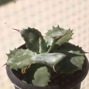 こんばんは! 今日のアガベイビーはアガベ「イシスメンシス」 白い葉と可愛いトゲが魅力的! 嬉しいことに今日もお嫁に行きました! ※買って頂いた方、ありがとうございます。