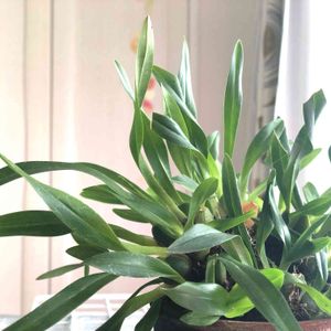 🌼オンシジウム ケイロホルム🌼 花芽が1本だけ上がって来ました。 画面中央やや左手。 購入時のようなフサフサ花茎にはどうやったらなるのかなぁ?