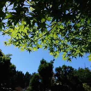 🍁モミジ🍁 今日のお花☺️ 去年、散歩先にて📷✨ 青空に緑のモミジが爽やかな、散歩日和でした😊♪ 散歩時間🛵😊♪