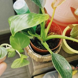 1.フィロデンドロン パライソベルデ 2.綺麗です💚縁が赤いのもかわいい😍 3.乱れていたので根元から仕立て直しで二株にしたのですが 元の方は右側緑の茎の方がガンガン元気に新芽出すと思いきや! まさかの萎びて見える方からバンバン出てます 4.一番上に見える緑の新芽風なのは何日か前に鉢の移動で当たり、 軽くポキッと折れました😭半泣き てか下のも先が切れてるみたい😂 小さくてやわやわです 右に新たに出てるのはこの写真撮った時に気付きました笑 確か気根があったから、切ってそのまま土に植えてますがもう結構経ってる。 根付いたかわか分からないけど枯れてないので大丈夫かな?😂 大きくな〜れ♪