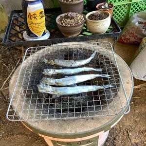 久しぶりに七輪出動。。。 安いビールでも 炭火焼シシャモで満足👍