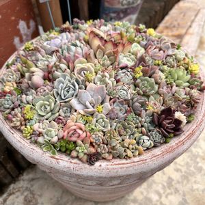 きっと枯葉はほぼ無いでしょうw 今日は何時間…枯葉取り😁 最近はオーディブル聴きながら多肉作業✨すごい楽しいです!! 寄せ植えも少し仕立て直し🤏