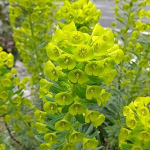 ユーフォルビア・カラキアス ドウダイグサ科 神戸三宮のフラワーロード沿いの花壇🤗 円筒形に咲く緑かかったクリーム色の花は非常に豪華で存在感があります😃 開花時期は春から初夏 地下茎によって地面下を広がりながら、多肉質な茎を高く伸ばして青緑色の葉を螺旋状につける低木植物🤗 圧倒されながら🤳 🌱🌱🌱 神戸市中央区 フラワーロード沿い 後ろのビルは「神戸国際会館」