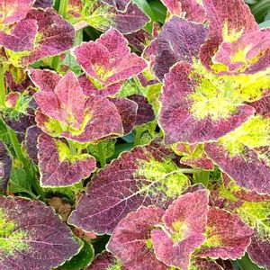 コリウス シソ科コリウス属 和名:金蘭紫蘇(きんらんじそ)、錦紫蘇(にしきじそ) 🌱葉を鑑賞する草花🤗 🌱花に負けない華やかさがあります😃 🌱ビルの影で直射日光の当たらない明るい半日陰のところなので、葉色もあせることなく、美しいです😃 🌱都会の高層ビルの花壇にはもってこいですね😃 🌱🌱🌱 神戸商工貿易センター 神戸市中央区浜辺通