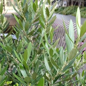 オリーブ モクセイ科オリーブ属 🌱常緑の高木 🌱太陽と温暖な気候、水はけの良い土壌とたっぷりの水が大好きです😃 🌱樹形と葉の形が魅力的🤗 🌱葉の表面は光沢のある緑色、 🌱裏面は白い細毛が密生していて、 🌱風が吹くときらきらと銀灰色に輝きます😃 🌱オリーブの葉は、防虫効果があるようなのでドライにしたオリーブの葉をネット等に入れてもいいですね😃 🌱🌱🌱🌱 右:神戸商工貿易センター 左:神戸サンボーホール 神戸市中央区浜辺通