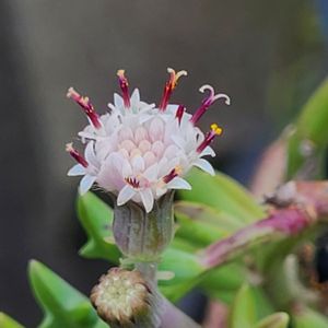 おはようございます☀ セネシオ属 ドルフィン ネックレスの花 8ミリほどの白い花、20個以上もの小さな花の集まりです。雄蕊の先がくるんと丸まってとってもかわいいのです😍