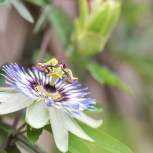今日の花🎵 今年のトケイソウは長雨の影響なのか蕾のまま終わってばかりでもう咲かないかと思いましたが今日一輪咲いてくれました😊