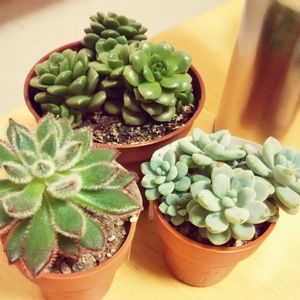 こんばんは😊 ホームセンターに行くと ついついお迎えする子を 探しちゃいます😅😅 ミニミニ多肉ちゃん💕 3つとも名前がわかりません😂 わかる方教えて下さい🤗🤗