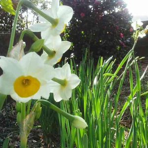 沢山咲いてきました🌼 朝日の中で、元気を貰います! 日本水仙─ヒガンバナ科 スイセン属 花言葉…うぬぼれ・自己愛