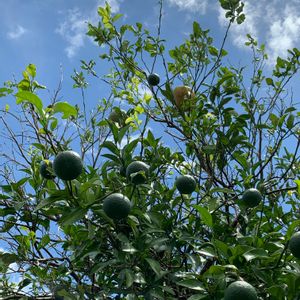甘夏とシークワァーサー🍊 シークワァーサーって緑色のイメージなのでもう少し大きくなったら収穫かな? そう思って調べたら、なんと熟すとオレンジ色になるんですって‼️知らなかったわーー😅 8月〜12月の間に、好みと使い方で収穫するんだとか 8、9月頃は酸っぱくてレモンやスダチ等のように使う 10、11月頃はジュース等 完熟した12月〜は生食できるんだとか😋 鳥被害受けないようにして完熟を是非とも味わいたいわ😆←食いしん坊だから しかし、シークワァーサーの葉っぱの色薄い…元気ないのかしら🙄🤔