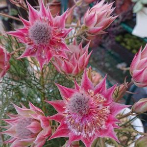 セルリア(ジョーイセルリア) プリティピンク ヤマモガシ科 プロテア属 半耐寒性常緑低木 久し振りにお花屋さんに行きました🥀 可愛い花が沢山並んでて ついつい買ってしまいました😁 セルリアは3回目の挑戦です⤴️ いつも夏越しに失敗して一年草扱いになってるので… 今年は挿し芽をして 予備軍を作っておこう…と考えてます☘️