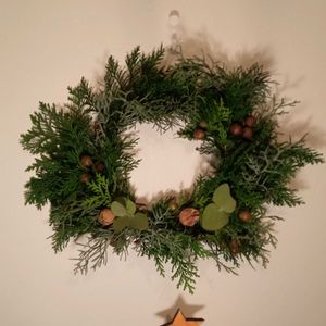 完成しました🙌🥗🎄 pic①②③④🎞️ 森林浴みたいに🌲🌳 樹の香りを🫧🍃🫧🌿 嗅ぎながら👃🫧💫✨ クリスマスリースを🥗 作りました🧤✂️ 今年は🗓️🐍 ふんわり🫧🎈🦋 優しい雰囲気に✨💖 完成🎉🫶💫 早速💨 玄関🏠🚪に 飾りました✳️❇️ そして… pic⑤🎞️ 🏷️野鳥の来る庭 イソヒヨドリ🕊️🪶🪽 白式部の実が⚪️⚪️⚪️🍃🌿 大好きな子です🐦 さあっ🙌 日曜日🗓️🚩✨ 素敵な一日を〜🤗