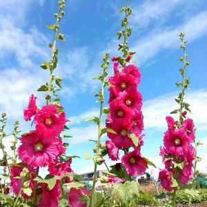 真上からパシャリ📱👀 ダイソーの花キリン赤と薄桃、センニチコウ、モナルダ、グロリオサ、、🌺🌸