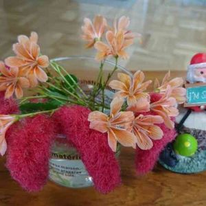 うちから持っていった ウィレシアとキャットテール。 職場の玄関に飾りました❤️ サンタさんと共にお出迎えします!