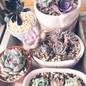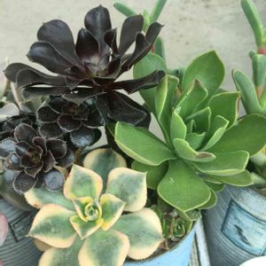 🎶黒法師様の植え替え✤ こんばんは(*ˊᗜˋ*)/ 今日はアエオニウムたちの植え替えを まとめてやりました*(^o^)/* タニクビギナーの頃から大好きな黒法師様 今回3つの鉢をまとめて植えました🌵 私のGSの初投稿が黒法師で 初めての頭カットから始まったんです たった1本の黒法師から挿し木で増やし こんなに大家族になりました♥️ 9月に葉焼けさせちゃって少し焦げてるけど ここ数日の冷え込みで休眠から目覚めてくれました👀 今年の冬はどのくらい大きく成長してくれるのか⤴️ 楽しみです٩( •ᴗ• )۶♩*゜ 黒法師2号のタグ🏷でまとめて見れます よかったらご覧下さい🥰