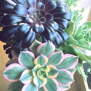 おはよー(*^▽^*) 寒くても元気いっぱいなアオエたち🍀 今が成長期なので、鉢からはみ出しちゃいました☘️ 黒法師1号は葉の枚数が増え、大きくなったし、黒法師2号も負けずに頑張ってるね💕 レモネードは目覚めると葉が開いてエケベリアみたいにロゼットで可愛い❤️ サンバーストはもっと寒くなると縁取りが濃いピンクになるょ💓 水やりの時に薄い液肥を与えるとググッと大きくなるよ🌱 写真を撮るのに家に入れたけど普段はお外にいるコです☀️ ※黒法師2号のタグで成長記録が見れます 1年の変化がわかり易くて、GSってとっても便利だなぁ🍀