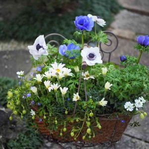 クレマチスカートマニージョーの ワイヤーを外して ハンギングに入れてみました🌸🌸🌼🌼 垂れ感がなんとも素敵✨ コレコレ!こうしたかったのよ😊💖 今日行くと連休\(^o^)/ 子供達も帰ってくるし 美味しいの作らないと🍽 今日20度まで気温が上がるって☀️🌈 お家で庭仕事したい〜💦