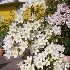常緑クレマチス カートマニージョをお迎えしました🌼*・ 大きな鉢に植え替えして、オベリスクを付けて、あげよう❣️❣️❣️ クレマチス、垂らすのも良いらしいんですが、迷い中…🤔💭