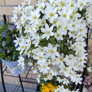 クレマチス 天使のすず.☆*ʚ👼ɞ.☆* 🫧🤍カートマニージョー🤍🫧 2年目♡⃛クレマチスの育て方って、よくわからないけど、キレイに咲いてくれました🤍✨