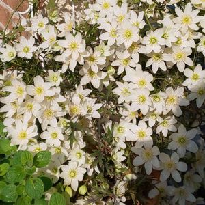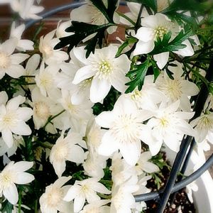 去年の夏、ホームセンターのお値下げコーナーからやってきた常緑クレマチスのアーリーセンセーションとカートマニージョー。 同じ日に植え替えたのに成長は様々です。左のアーリーさんはお花少な目、枝がワサワサ。カートマニーさんをくすぐりに行ってます🤗カートマニーさんはお花沢山で枝は少な目。ガーデニングは色んな発見があって楽しいですね🌿