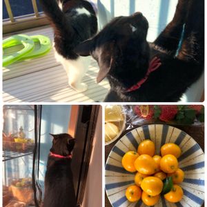 ちょっと 貴方達💦 なに2匹並んで 爪研ぎしてるの⁉️💧 そこダメって 言ったでしょ❓ こはる〜逃げ足が速いわね💢 おはぎ〜 分かってるみたいね イカ耳になってるよ💧 おはぎ〜💦ここがダメなら 反対側って💧そっちもダメだから😱 大実キンカン🧡 まだ あった〜😺 皮が本当に甘い❣️果汁は酸っぱい(*≧∀≦*)