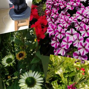 庭のお花達~🌼 カリブラコア エキナセア サザンクロス おまけ むぎちゃん椅子に座るむぎちゃん😼