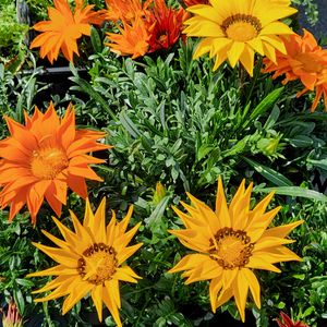 『ガザニア』 【花言葉】 貴方を誇りに思う 身近な愛 笑顔で答える 希望の光 栄光 潔白 ひまわりのミニタイプみたいですね。 花びらは 燃えるような🔥形状で メラメラと元気出そうです💪😊✨️🎉