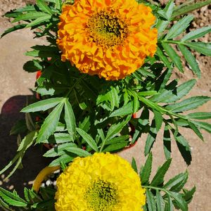 『マリーゴールド』 まぁるくて 一般的に見るマリーゴールドとは違うので購入してみました。 🍅や🍆の苗も購入したら マリーゴールドを植えておくと 虫避けになると聞きましたので…😅👍✨️
