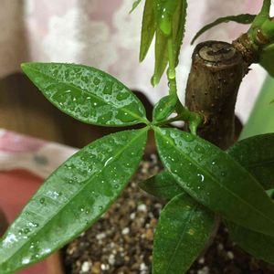 パキラさんの鉢に生えた謎のヤツ 母曰く「雑草だから抜いて良いよ」 何か分からないから少し大きくなるの待てと言われてました。 😲抜け!?ここまで育てたのに‼︎(T ^ T) 枯れるまで育てる!
