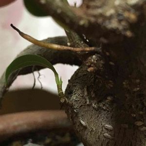 ガジュマルの白い奴 枯れかけなのか立派茶色い枝みたいな色になってきた上向は変わらず 寒くなるから冬眠に入る感じダスか?