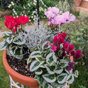 ピンクのガーデンシクラメンをお迎えし、昨年の寄せ植えをアレンジし直しました💞🤗 種から成長中のブルースターさんをセンターに…💙♪♪