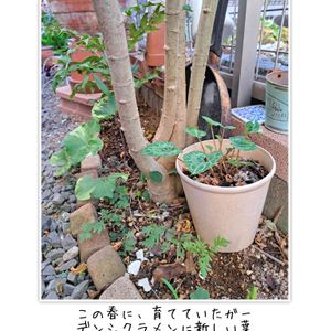 この春に、育てていたガーデンシクラメンの葉が出てきました。 ずっと、植木鉢を放置していて気にかけていなかったのでビックリしました。 今まで、ワンシーズンでサヨナラしていたので初の出来事です。 放ったらかしだったので、花が咲くのか微妙ですが今後の成長が楽しみです!!