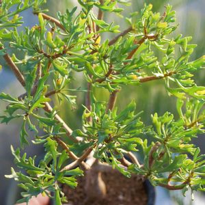 オトンナでは割と細めの葉がすがすがしく、 枝振りの良いコミフォラのような雰囲気も合わせ持っている。 今、いちばんのお気に入り冬型塊根植物です。 毎日時間を忘れて眺めています。