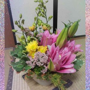 父の月命日のお花💐 昨日、伯母の1日葬に行って来ました 最寄駅で人身事故 ルート変えて行って、会場の最寄駅到着 5分遅れ タクシーがなかなか来ず、やっと来たものの違う所に・・・ 結局30分遅れてしまいました😂