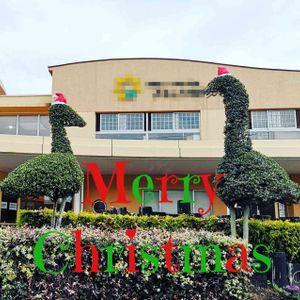 ☃︎𖢔𓍄𓃕♪MerryChristmas♪𓍄𓃕︎𖢔☃︎ 鳥類?はたまた恐竜かな!? トピアリー仕立てにサンタ🎅帽をチョコンと のっけて♡可愛いかったぉ(⑉˙ᗜ˙⑉) ☃︎𖢔𓍄*̣̩⋆̩皆々さまステキなChristmasを♪𓍄𖢔☃︎*̣̩⋆̩☽