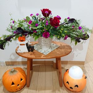 お花のlesson🥀 真紅の薔薇とブラックカラーを使ってシックらアレンジメント❤️ 上から見るとS字になっているんです😁