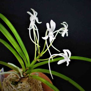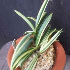 今から何年か前、地元の某ホームセンターでたくさんの普通のフウランの株を販売していました😆 すべて花がついていました 🙄その中の沢山ある株の一本、たち(一番新しい葉)のみに薄い一筋の縞を見つけました😲 買って帰って作るとこのようなリッパな縞に✨ 何かの柄抜けを売っていたのか謎です😵 ちなみに青根青軸で織姫に似ていますが斑の入方など違います😆 ホームセンター面白い⁉️ ぜひ皆さんも