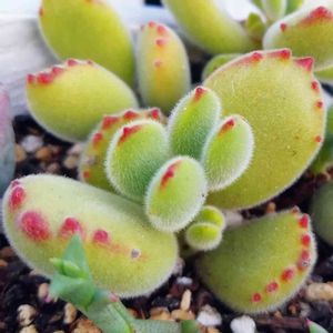 爪の数が…(-ω- ?) 去年カットして数ヶ月もほったらかしだった熊童子😅 植えないままでシワシワにしたけど根付いて成長してきました。 その中に新芽の爪が1つのまま大きくなってる株がいます。 この先どうなるのかな⁉️