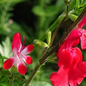 おはようございます チェリーセージ開花してます。左の花がいつもと違う姿。突然変異❔同じ株なのに不思議です🤔。