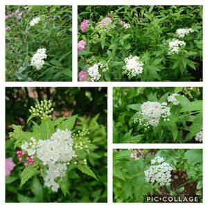またまたシモツケですが、白花に所々ピンクが混ざってます。 突然変異みたいです。