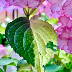 今年一押しのアジサイ ボスコープビューティ ♥ 花色がどんどん変わり長い間 楽しむことができました。 それと、斑入りの葉 たぶん、突然変異かと思うけど 来年もこの葉が出てきてほしい💓