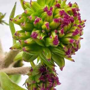 ツワブキの「福智宝珠」です。 福岡県で発見された変わり花です。