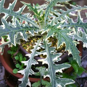 斑入りアザミの色々です。 基本種はよく見かける野草ですが、鉢植えにすると意外と育てるのが難しかったりします。