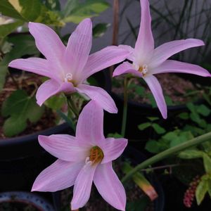 キツネノカミソリのオレンジをピンクにしたようなリコリスです。 花の大きさも開花の時期もおなじです。