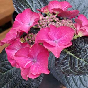 真っ黒いカラス葉のアジサイです。 後暗みで7月頃から葉っぱに緑が乗ってきます。