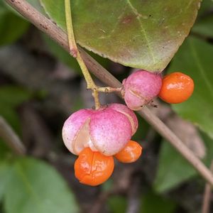 冬の凛とした冷たい空気の中✧₊*⋆ฺ࿐⋆.˚⊹✧₊*⋆ฺ࿐⁺ 美しい緑の葉💚と赤い実🔴 マサキの赤い実🔴が熟して弾け・:*゚☆ 艶のあるオレンジ色🧡の種子が飛び出してる♫(*^-^*)ꕤ 🏷木曜日は木の実 🏷木曜日は木 🏷木曜日は気(木)になる実 参加させていただきます♪