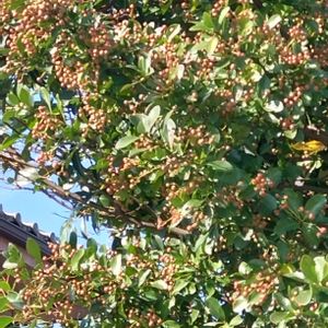おはようございます😊 ①②💠 斑入りマサキ 💠実 ③💠 オタフクナンテン 💠 ④💠 トウネズミモチ💠 お隣のマンション植込みがとっても綺麗です🌳🎶 4枚あります🌿 ܸ 見て下さいね😊🎶💕︎