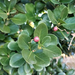 雌雄異株 果実は直径7~8mm球形 熟して3~4裂すると〰︎ 橙赤色の仮種皮に包まれた 種子が現れます🎶 柾(まさき) ニシキギ科